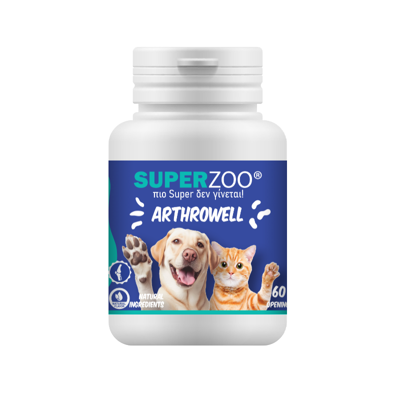 Εάν ο τετράποδος φίλος σας υποφέρει από αρθρίτιδα, πόνους κατά την κίνηση ή δυσκολία στο τρέξιμο, τότε το ARTHROWELL είναι αυτό που χρειάζεται. Όταν τα ζώα έχουν αρθρίτιδα, ο χόνδρος, ο οποίος καλύπτει και προστατεύει τα άκρα των οστών, φθείρεται με συνέπεια την δυσκολία κίνησης και οξείς πόνους. Η γλυκοζαμίνη δρα συνεργατικά με το MSM (μεθυλοσουλφονυλμεθάνιο) και συμβάλλει στην όσο το δυνατόν πιο γρήγορη αποκατάσταση της άρθρωσης και στη μείωση του πόνου, ενώ ο κουρκουμάς βοηθάει στη μείωση της φλεγμονής. Το ARTHROWELL είναι ιδανικό και για μετεγχειρητική περίοδο. Λόγω της φυτικής προέλευσης της HCL GLUCOSAMINE μπορείτε να χρησιμοποιείτε το προϊόν και σε ζώα με αυξημένο ζάχαρο, καθώς δεν αυξάνει τα επίπεδα γλυκόζης στο αίμα.