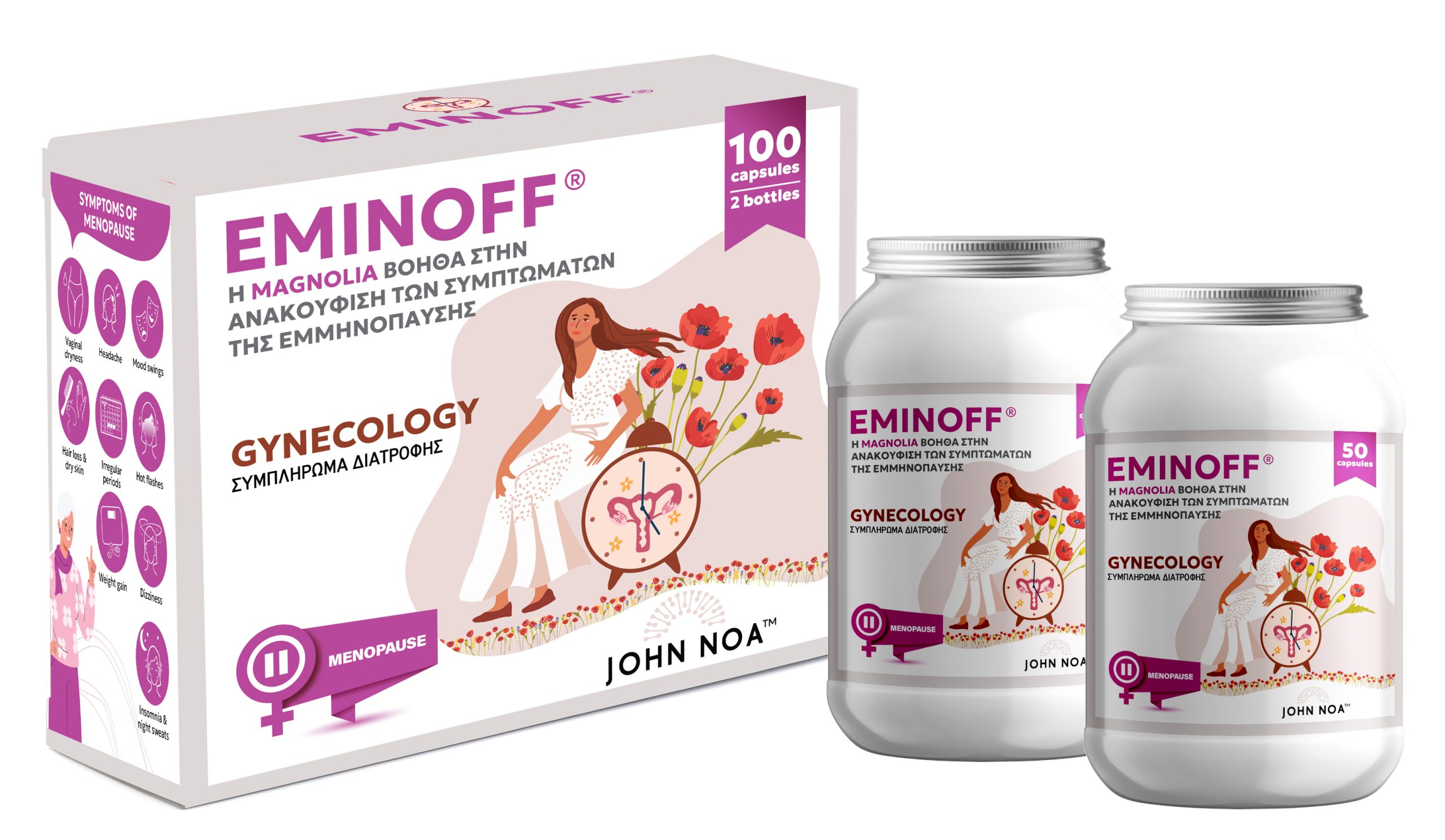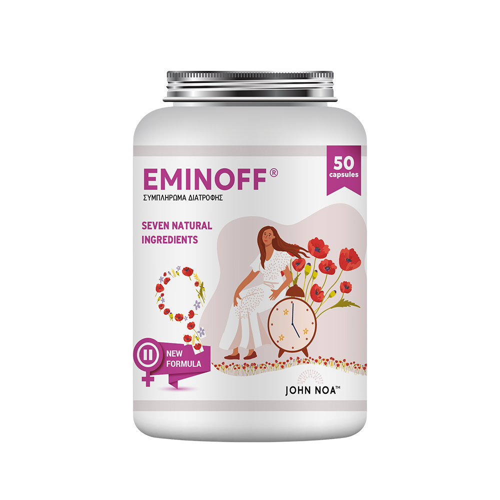 Το EMINOFF είναι ένα φυσικό συμπλήρωμα διατροφής ειδικά σχεδιασμένο για να ανακουφίζει από τα ενοχλητικά συμπτώματα της εμμηνόπαυσης και της περιεμμηνόπαυσης. Ο συνδυασμός φυτικών εκχυλισμάτων και βιταμινών υποστηρίζει την ορμονική ισορροπία, μειώνει τις εξάψεις και βελτιώνει τη διάθεση και τον ύπνο.