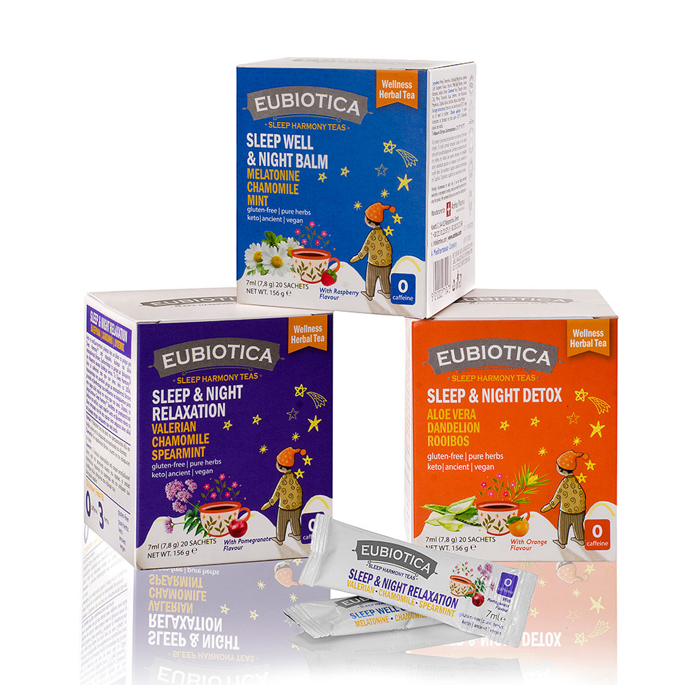 Το Eubiotica Sleep & Night Detox είναι ένα απολαυστικό και αναζωογονητικό βοτανικό ρόφημα που συνδυάζει την ηρεμία με την αποτοξίνωση. Βασίζεται στο μείγμα Sleep Harmony με χαμομήλι, δυόσμο και λεμονόχορτο, γνωστά για τις καταπραϋντικές τους ιδιότητες, που βοηθούν στη χαλάρωση και την προετοιμασία για έναν ήρεμο ύπνο. Εμπλουτισμένο με εκχύλισμα αλόης, που συμβάλλει στην αποτοξίνωση του εντέρου και την ισορροπία του στομάχου, green rooibos, πλούσιο σε αντιοξειδωτικά χωρίς καφεΐνη, και ρίζα πικραλίδας, γνωστή για την ισχυρή αντιοξειδωτική της δράση, το ρόφημα αυτό υποστηρίζει τη φυσική διαδικασία αποτοξίνωσης του σώματος κατά τη διάρκεια της νύχτας. Ένας ιδανικός σύμμαχος για υγιή ισορροπία, ευεξία και ποιοτικό ύπνο.