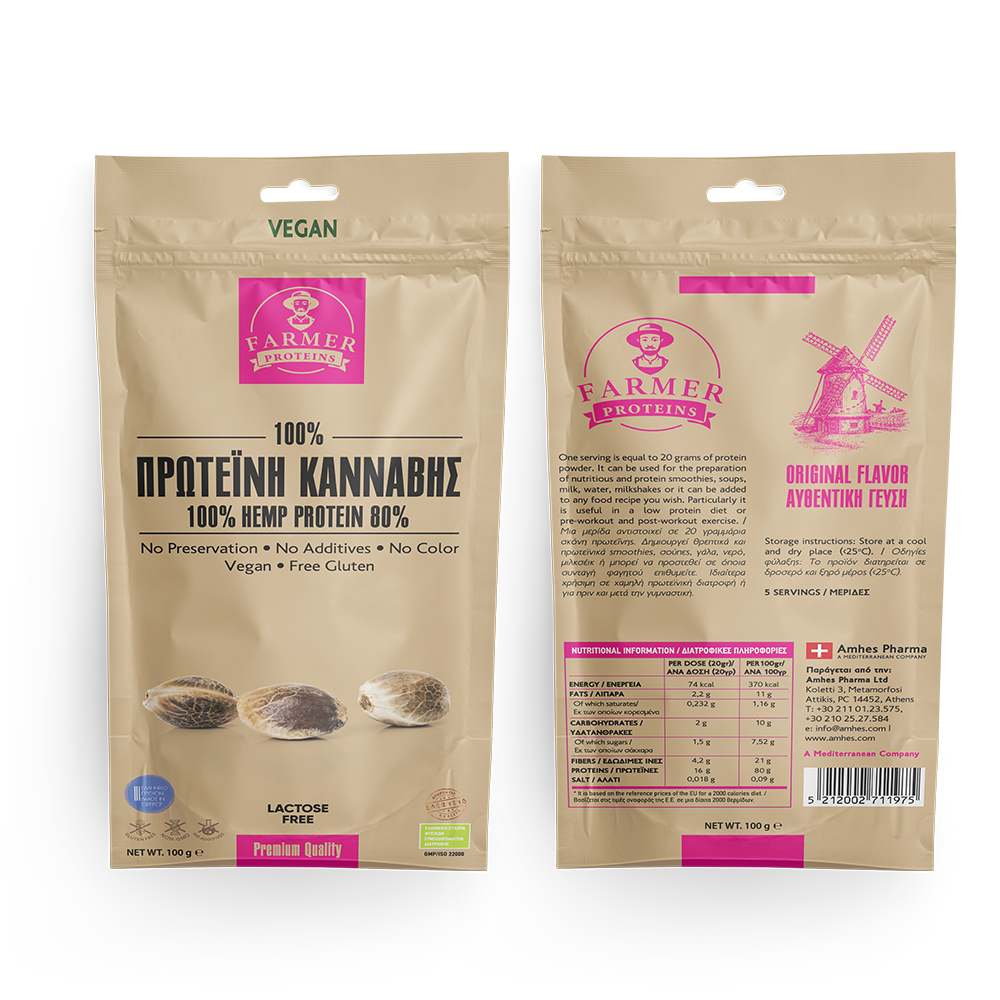 Πρωτεΐνη Κάνναβης – FARMER Vegan Proteins 80%, 100g