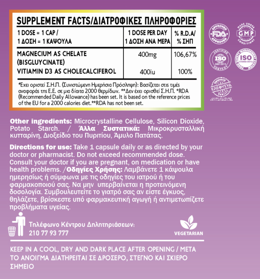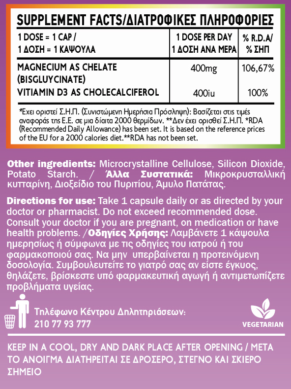 - Συνεργική δράση → Το μαγνήσιο είναι απαραίτητο για την ενεργοποίηση της βιταμίνης D, ενώ η D3 υποστηρίζει την οστική και μυϊκή δράση του μαγνησίου.